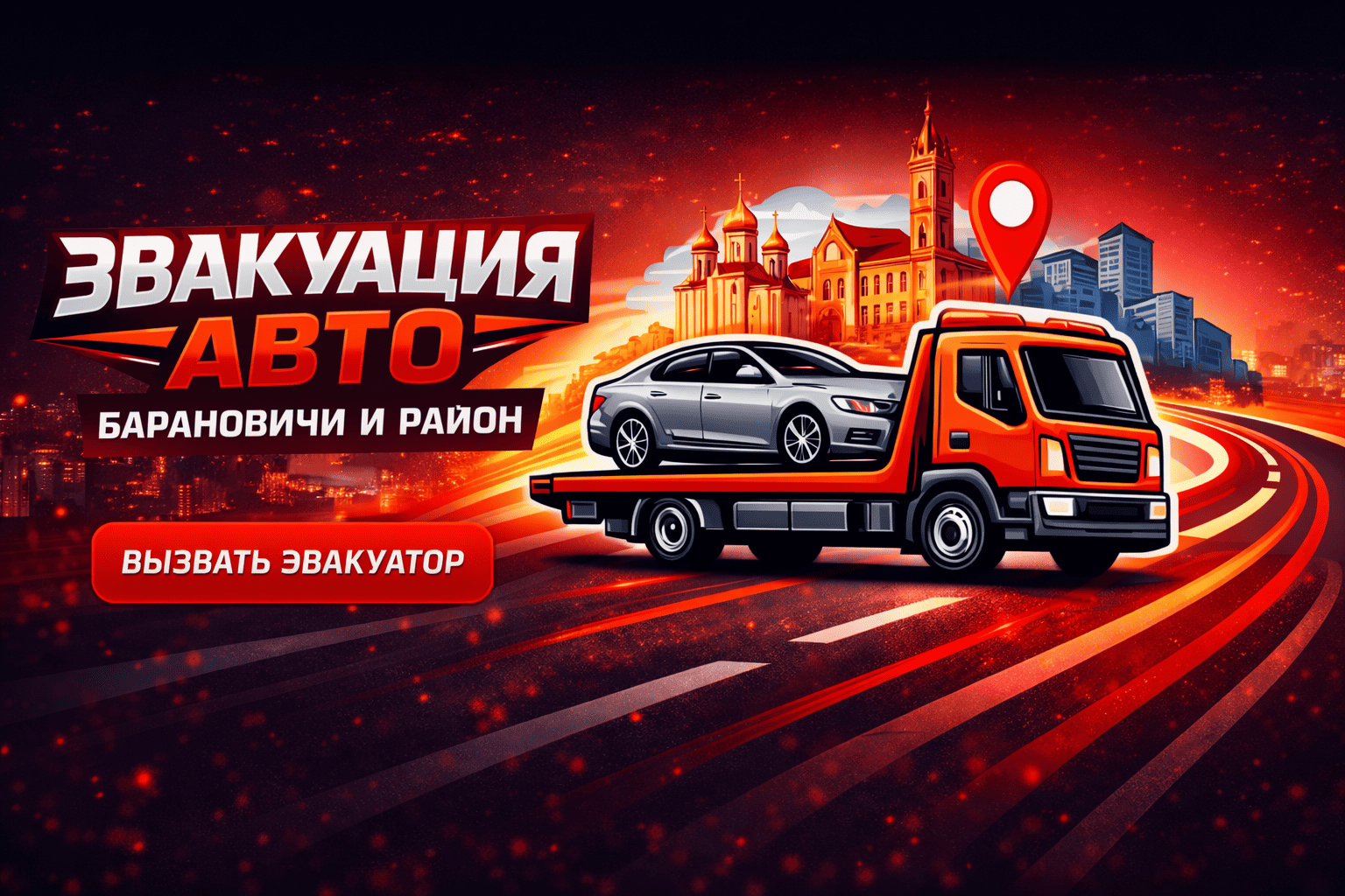 АОперативная транспортировка легковых и коммерческих авто в Барановичах и по району — на СТО, в гараж или другой город. Работаем 24/7.
